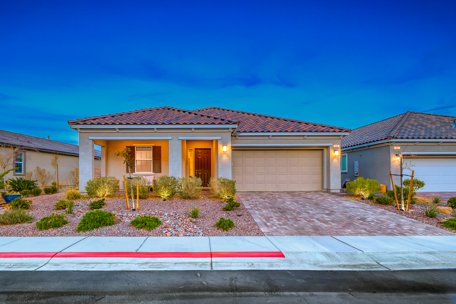 Perched along the side of a dramatic cliff with no rear neighbors, 32 Tatahatso Point Street in Lake Las Vegas offers a rare blend of privacy, light, and breathtaking mountain views. This newer single-story residence spans 1,718 square feet and is thoughtfully positioned to capture the ever-changing colors of the painted desert landscape from its main living spaces. A paver-lined driveway and clean architectural lines set the tone for a home that feels both refined and relaxed.