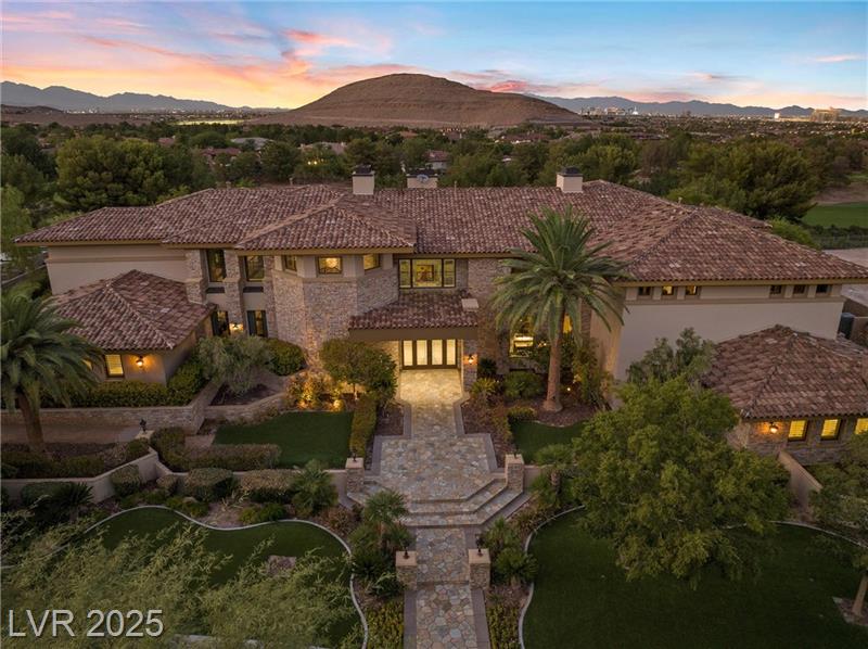 Nestled on nearly an acre along the exclusive Southern Highlands Golf Course, this 12,707 sq. ft. custom estate offers a stunning blend of luxury and sophistication. This home is truly a masterpiece, featuring 5 spacious bedrooms, 6.5 baths, and designer finishes from Swarovski, Baccarat, Steinway, and Versace. The expansive primary suite is a private retreat, complete with a cozy sitting nook, two-way fireplace, a luxurious custom walk-in closet, and a spa-like bathroom.
