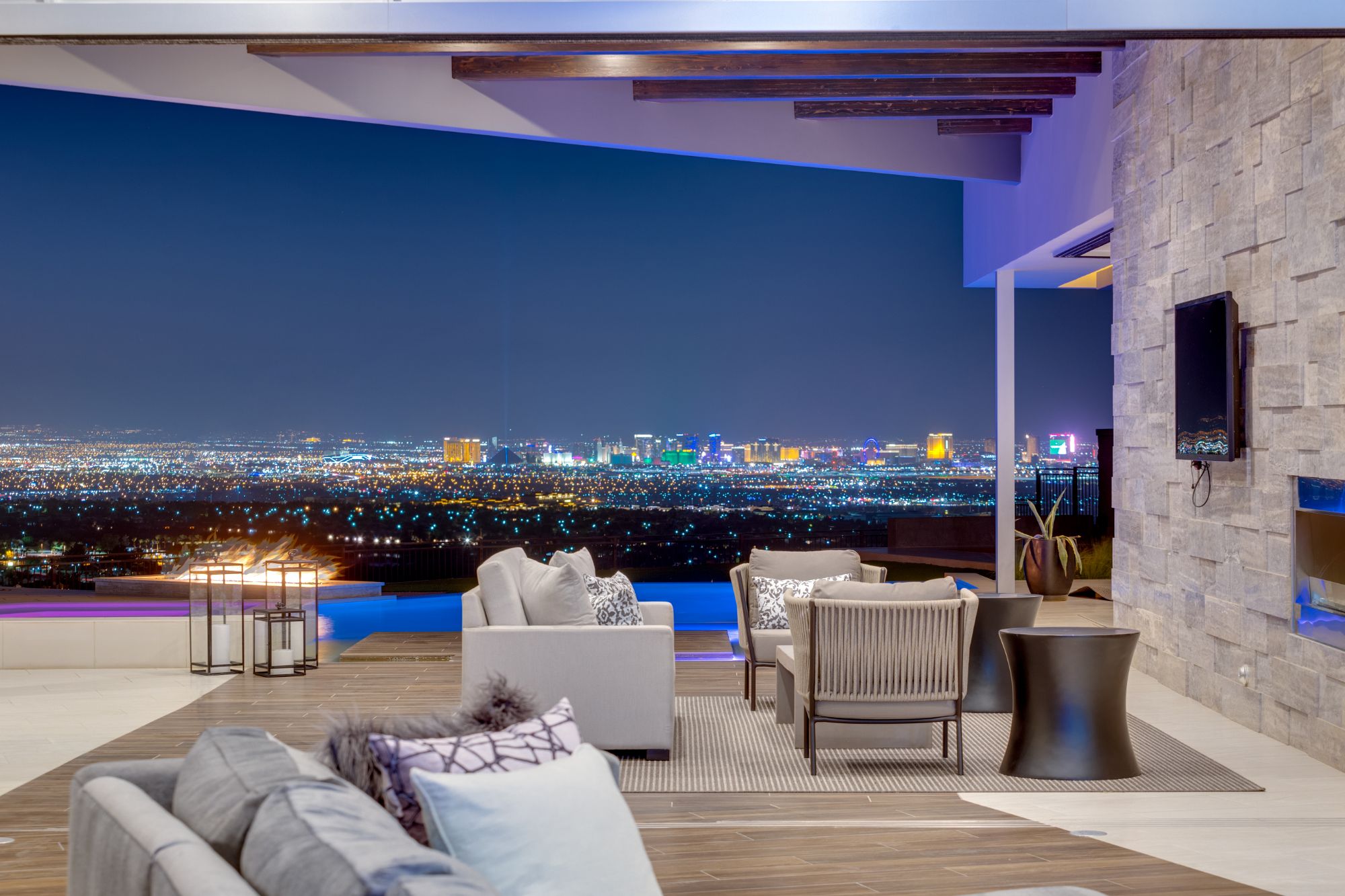 Have the Las Vegas Strip in your backyard! Stunning single story home in prestigious Ascaya with unobstructed views overlooking the entire Las Vegas Valley. Pocketing doors throughout create seamless indoor-outdoor spaces, and a flex theatre room allows for versatile living.