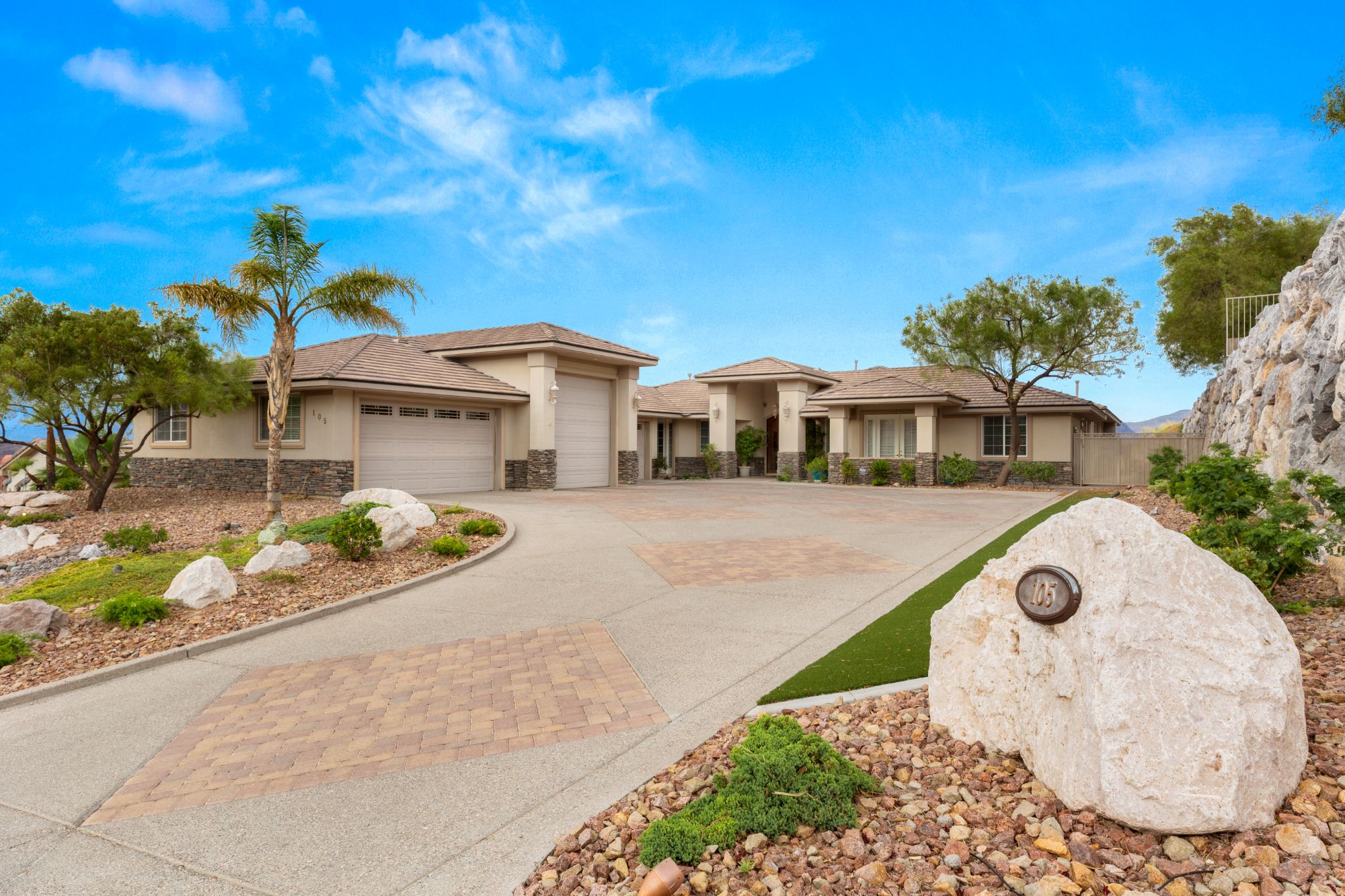 A single-story Boulder City home with a sweeping view of Lake Mead offers a unique opportunity to capture the dream of a luxurious lifestyle amidst the grandeur of untouched natural beauty. Sited to take full advantage of its nearly half-acre site, this six-bedroom, five and a half-bath home boasts a total of 5,518 square feet of excellent-quality construction. There is garage space for at least five vehicles, including an oversize RV garage that features workshop and hobby space.