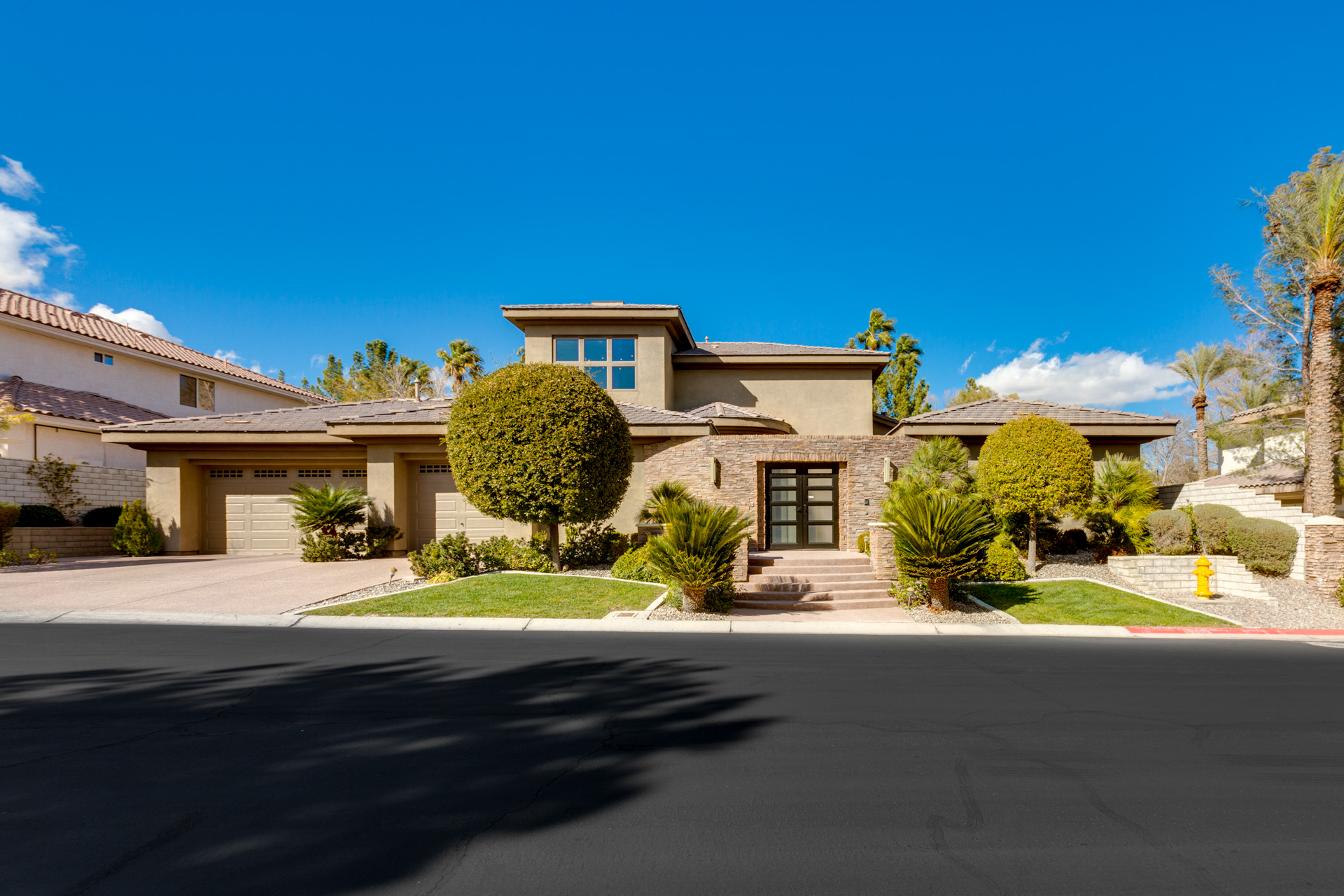 Stunning contemporary custom home in grd gated Regency at The Lakes!Close to RR Mnts and dwntwn Summerlin,inspired by Frank Lloyd Wright architecture,professionally designed and furnished,this residence is a true trophy property.