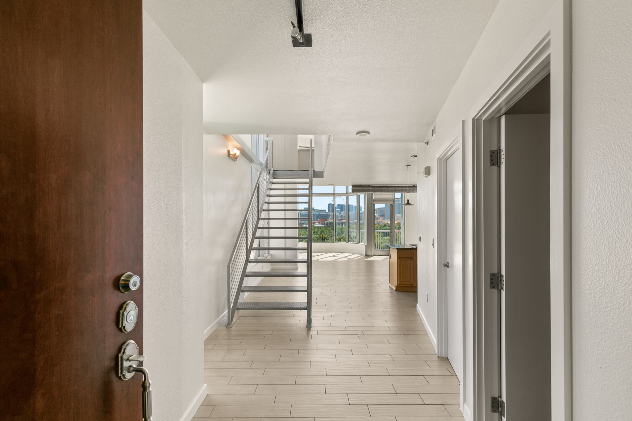 Experience unparalleled luxury in this stunning high-rise two-story condominium located on the 6th floor. This exquisite 2-bedroom, 2-bathroom residence offers breathtaking views of the iconic Las Vegas Strip, MSG Sphere, and the lush Wynn Golf Course. The open layout is accentuated by dramatic high ceilings, providing a sense of grandeur and spaciousness.