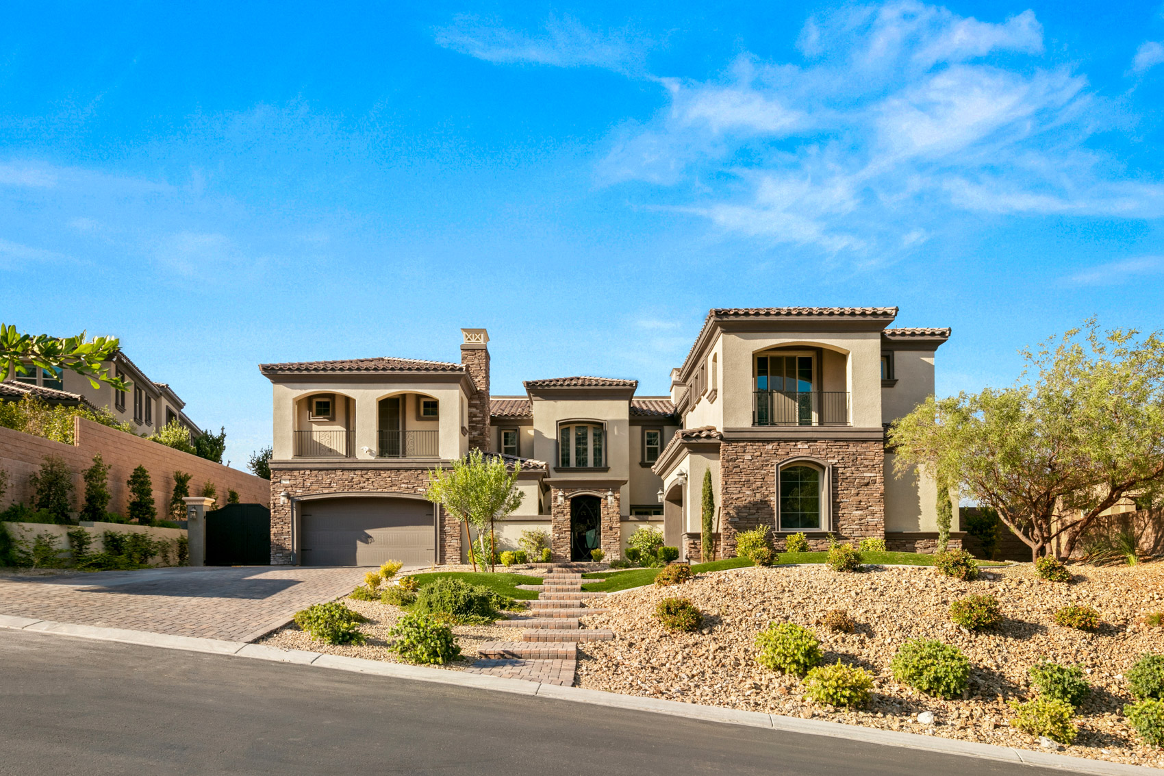 Nestled within the prestigious Southern Highlands enclave, 16 Olympia Ridge Drive presents an unparalleled opportunity to own a piece of luxurious Las Vegas living. This exquisite 2-story estate, spanning an impressive 6,250 square feet, sits majestically on a grand 0.78-acre homesite, offering breathtaking views of the iconic Las Vegas Strip.