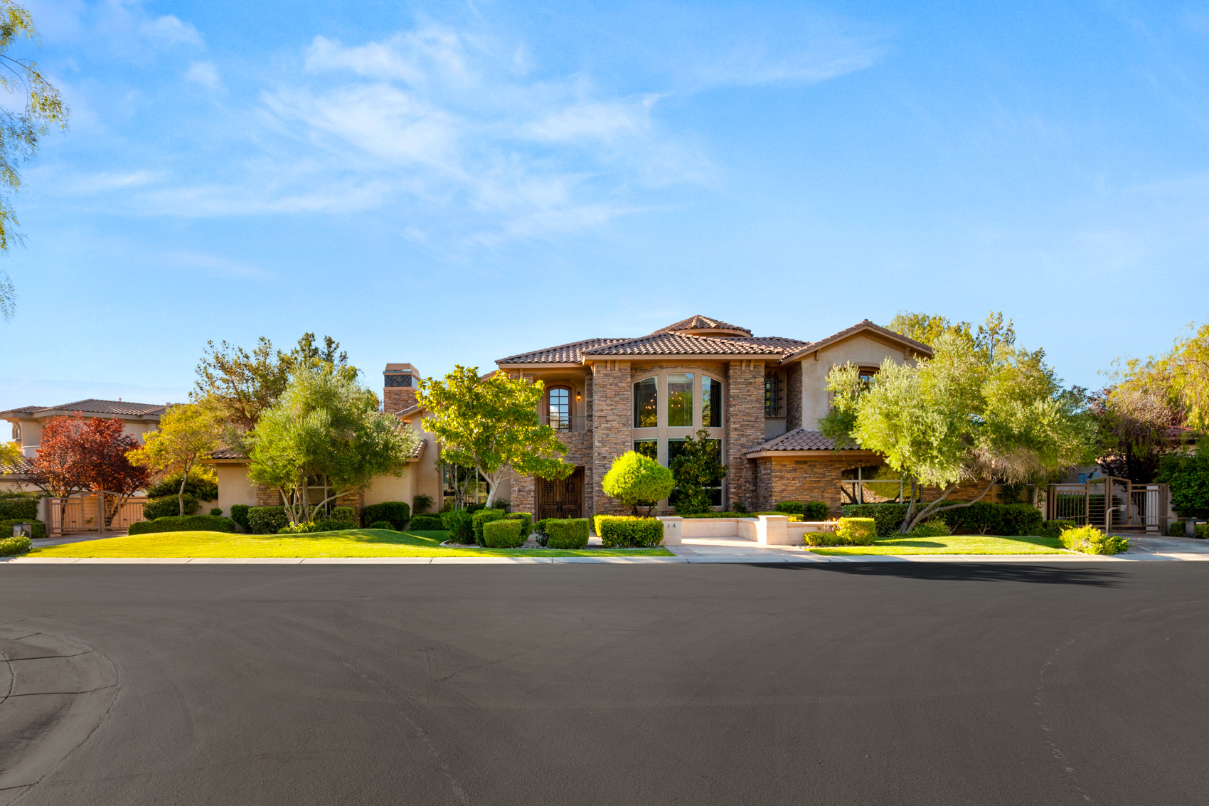 Welcome to this exquisite Italian Villa, nestled behind the second gate in Anthem Country Club. This custom Da Vinci model offers full golf course frontage with breathtaking mountains and city skyline views. The elevated yard features an infinity-edge pool, spa, lounging deck, and multiple observation areas with fireplaces perfect for taking in the stunning surroundings.