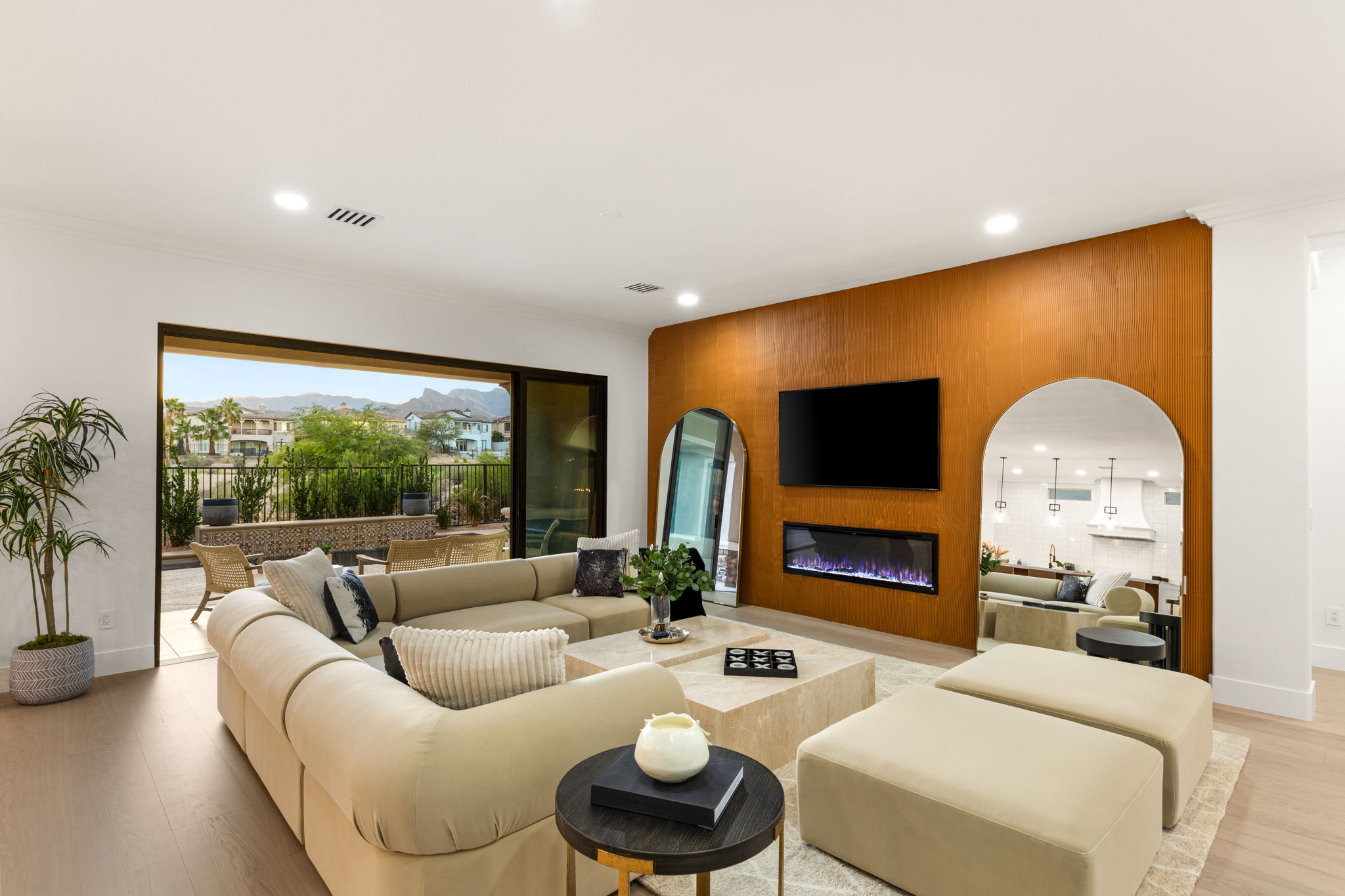 Welcome to 2137 Orchard Mist Street, a freshly remodeled 6-bedroom, 4-bath luxury home located in the highly sought-after Red Rock Country Club. This stunning residence, built by Toll Brothers, offers 4,257 square feet of modern elegance combined with natural elements, creating a harmonious living environment that is both inviting and luxurious. The property is nestled on a prime lot directly on the golf course, and uniquely, it comes with the rare opportunity to extend the property line, making the homesite even larger and more exclusive.
