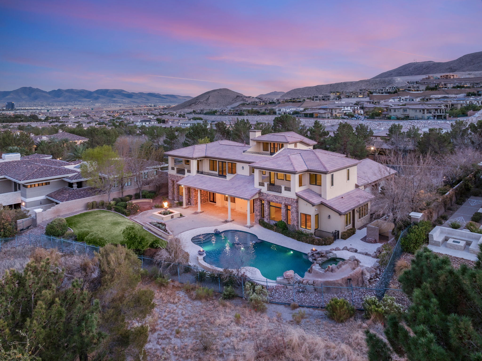 Welcome to 62 Golf Estates Drive, a breathtaking 3-story luxury estate in the prestigious Southern Highlands community. Perfectly positioned on an expansive 0.63-acre homesite, this exquisite property offers unmatched privacy, stunning golf course views, and panoramic vistas of the iconic Las Vegas Strip. Designed for those who appreciate refined elegance and ultimate comfort, this home seamlessly blends timeless architecture with modern amenities.
