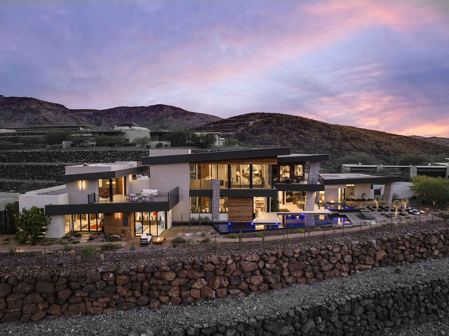 This remarkable custom-built, two-story luxury estate at 6 Vista Crescent Court, nestled in the exclusive enclave of ASCAYA, offers a rare blend of modern design and resort-style living. Spanning 8,438 square feet on a 0.75-acre elevated homesite, this architectural gem delivers sensational panoramic views of the iconic Las Vegas Strip from almost every angle. Each space is designed with entertainment and relaxation in mind, creating a seamless flow from indoor to outdoor living.