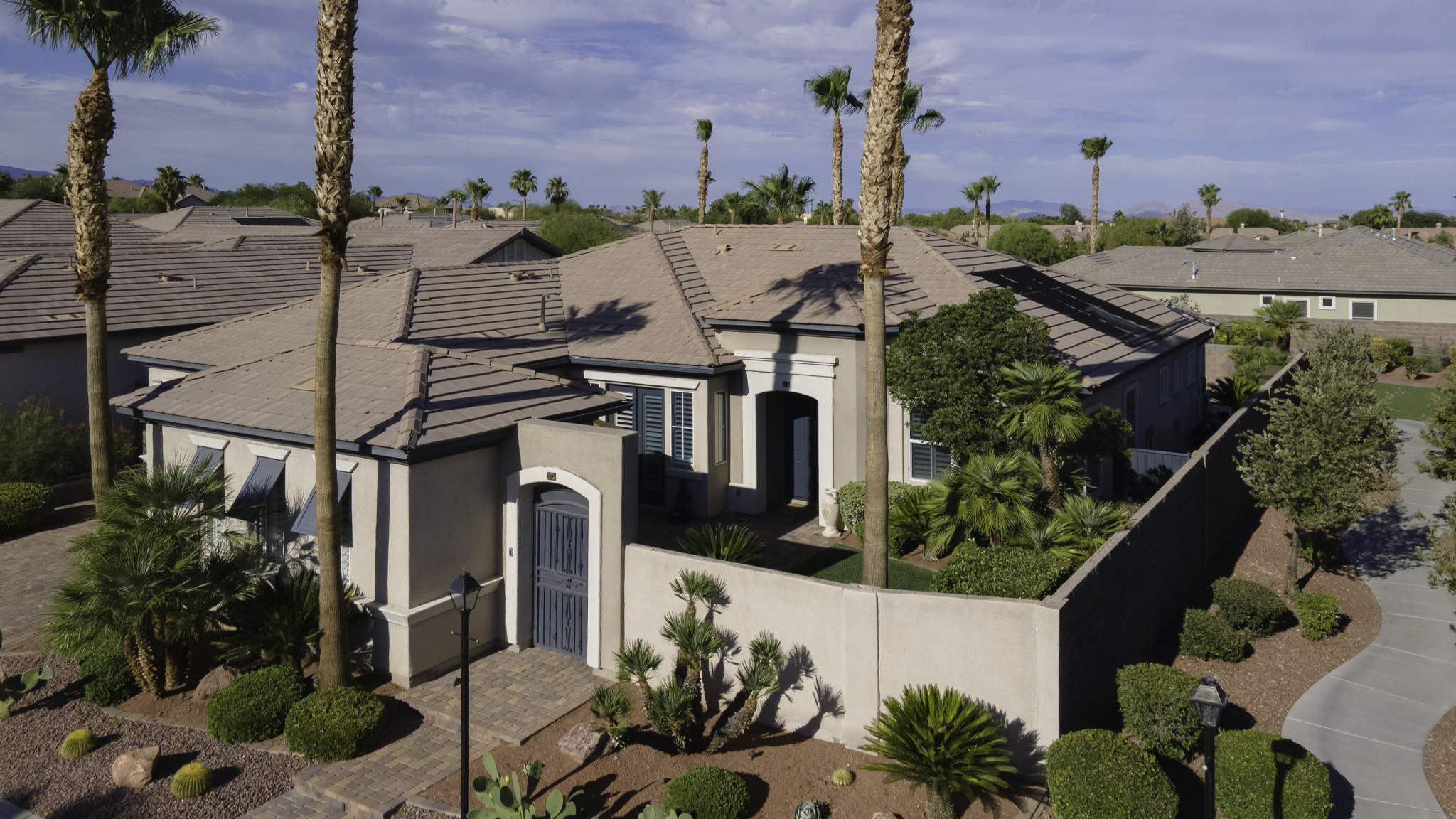 Tucked behind the gates of a lush Summerlin enclave, 3212 Wisteria Tree welcomes you with impeccable landscaping and a tranquil courtyard warmed by a cozy firepit. This single-story, 3 bed, 3 bath, 2,578 SF home offers an open floor plan adorned with shutters and framed by mature palm trees. The spacious primary suite is a true retreat—unwind in the jetted tub and embrace the quiet luxury.