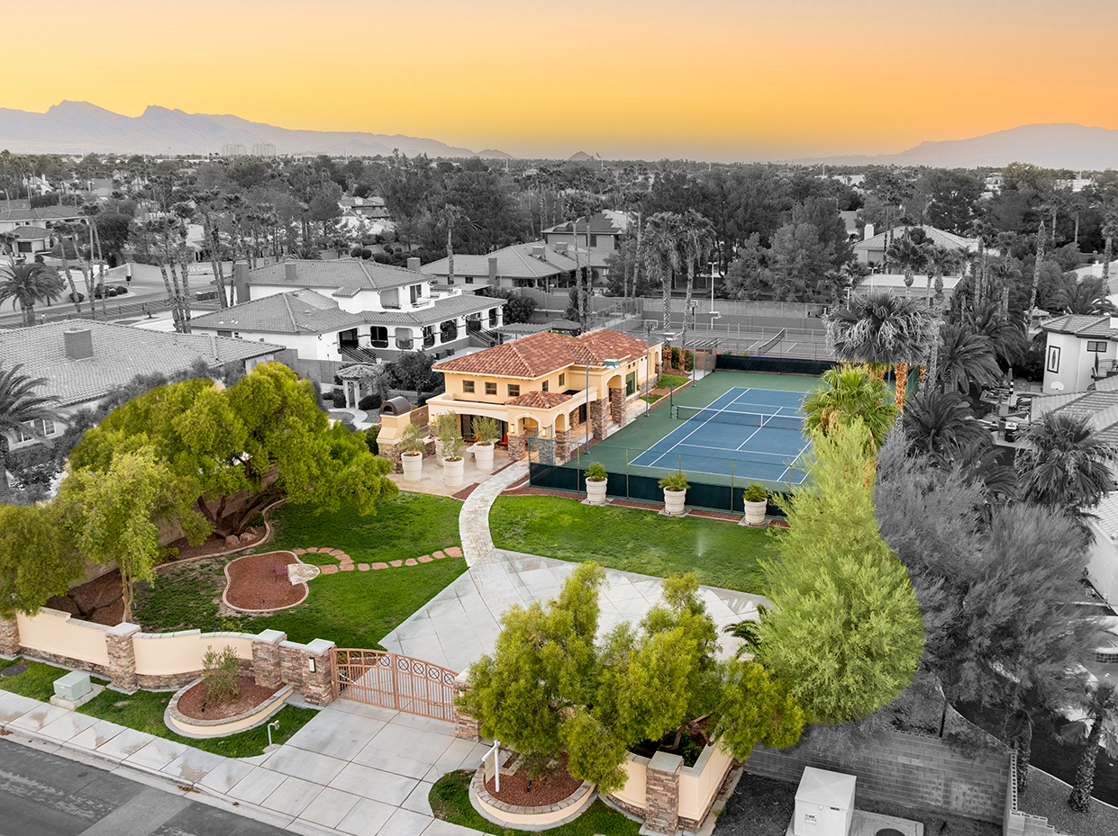 Experience the epitome of Las Vegas luxury living on this rare ½-acre fully gated estate with no HOA. This exquisite custom one-bedroom, one-bath home boasts soaring cathedral ceilings, a Sub-Zero refrigerator, and timeless design details that exude elegance.
