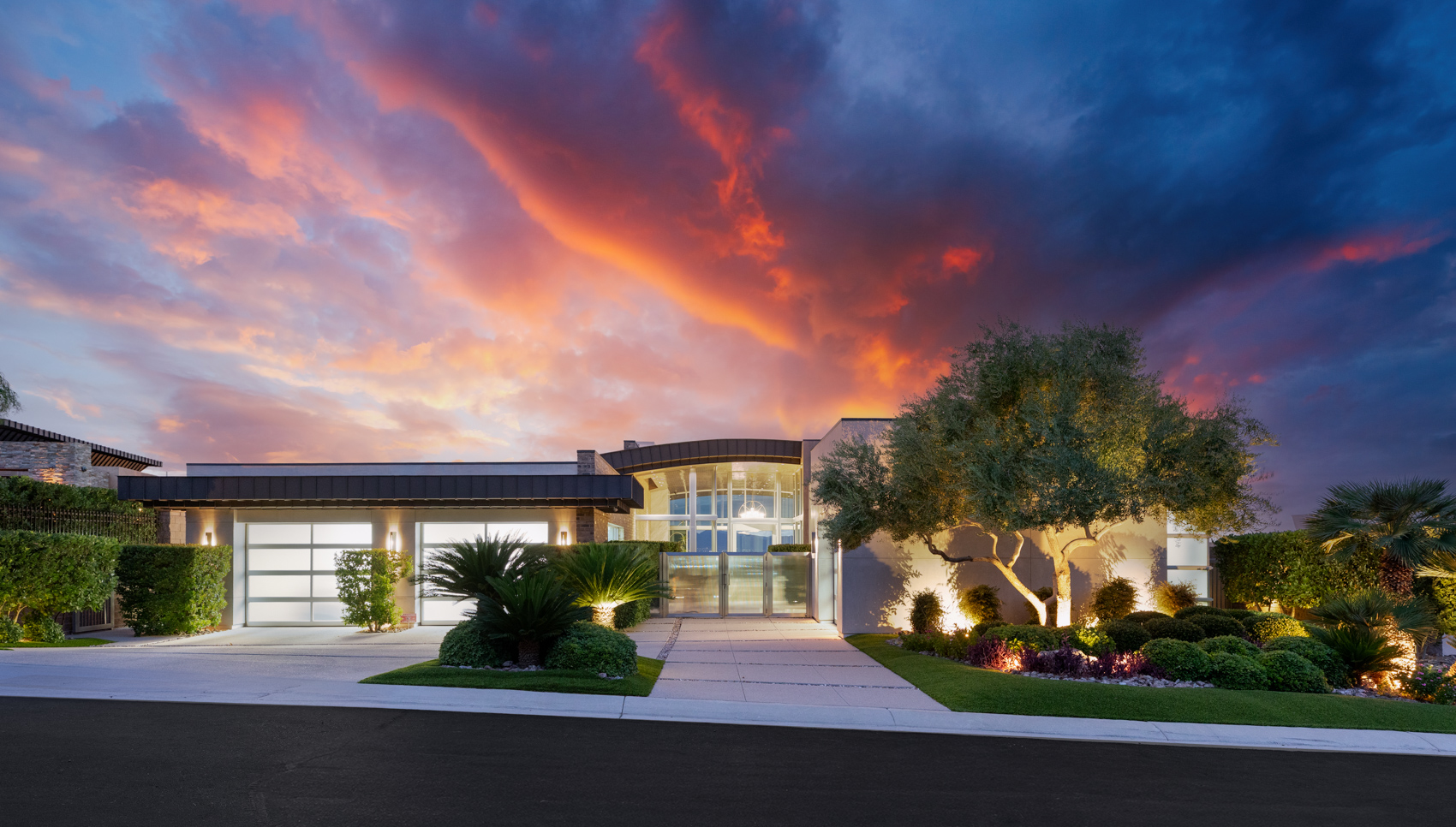 Set within the prestigious guard-gated community of MacDonald Highlands, 677 Tranquil Rim Court embodies architectural brilliance and modern sophistication at its finest. Designed by the acclaimed Pinnacle Architects, this custom estate spans 5,693 square feet and combines the ease of single-story living with the versatility of a finished basement. With four bedrooms, five bathrooms, and a four-car garage, the residence offers both scale and intimacy—crafted to embrace the desert setting while framing extraordinary views of the Las Vegas Strip and city skyline from both levels.