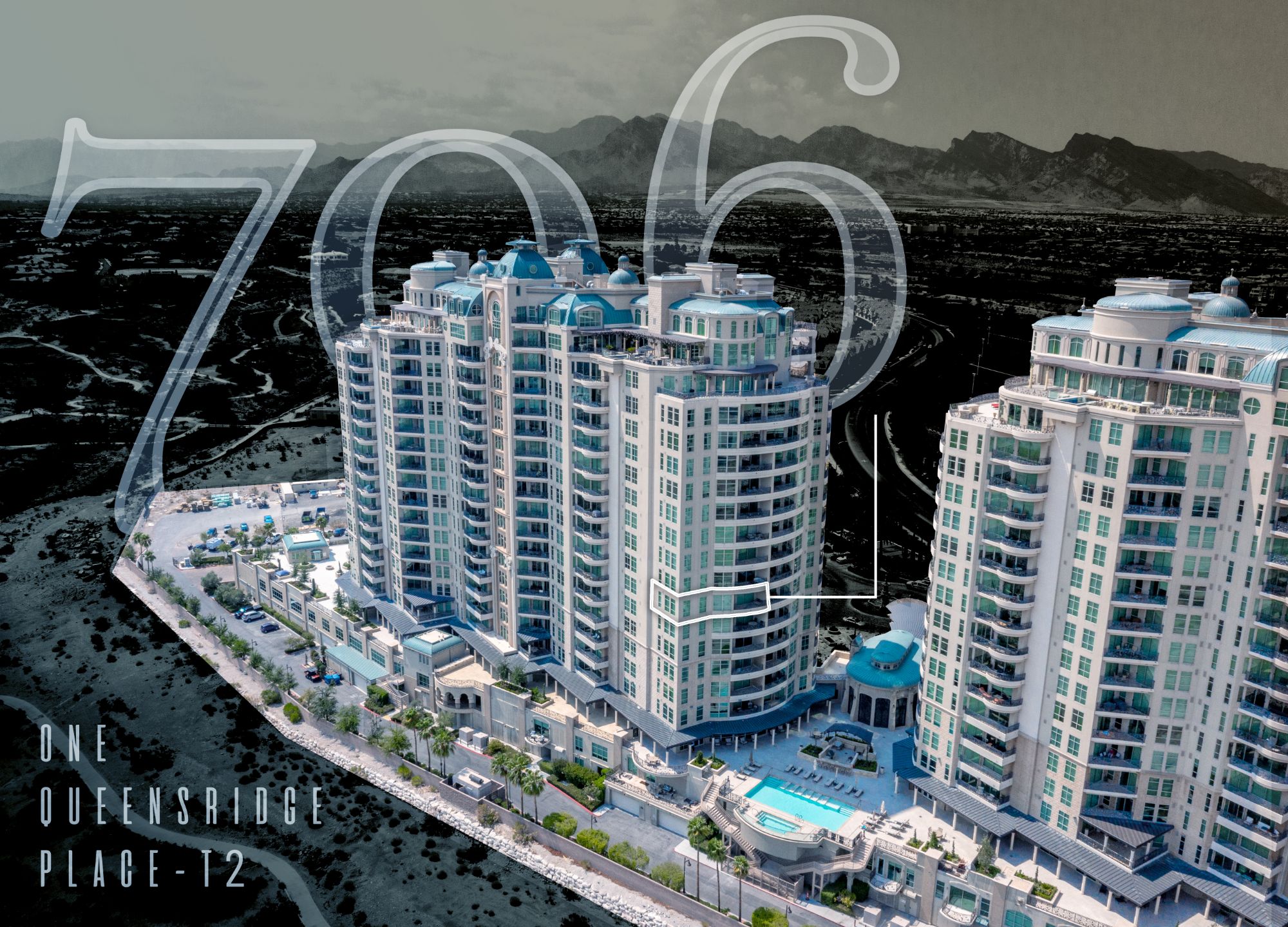 Sophisticated high rise living at One Queensridge Place, the only luxury condo in suburban Las Vegas! This 2 bedroom, 3 bathroom unit with office, offers unobstructed views of Tivoli Village and The Strip from the east end-cap of Tower 2.