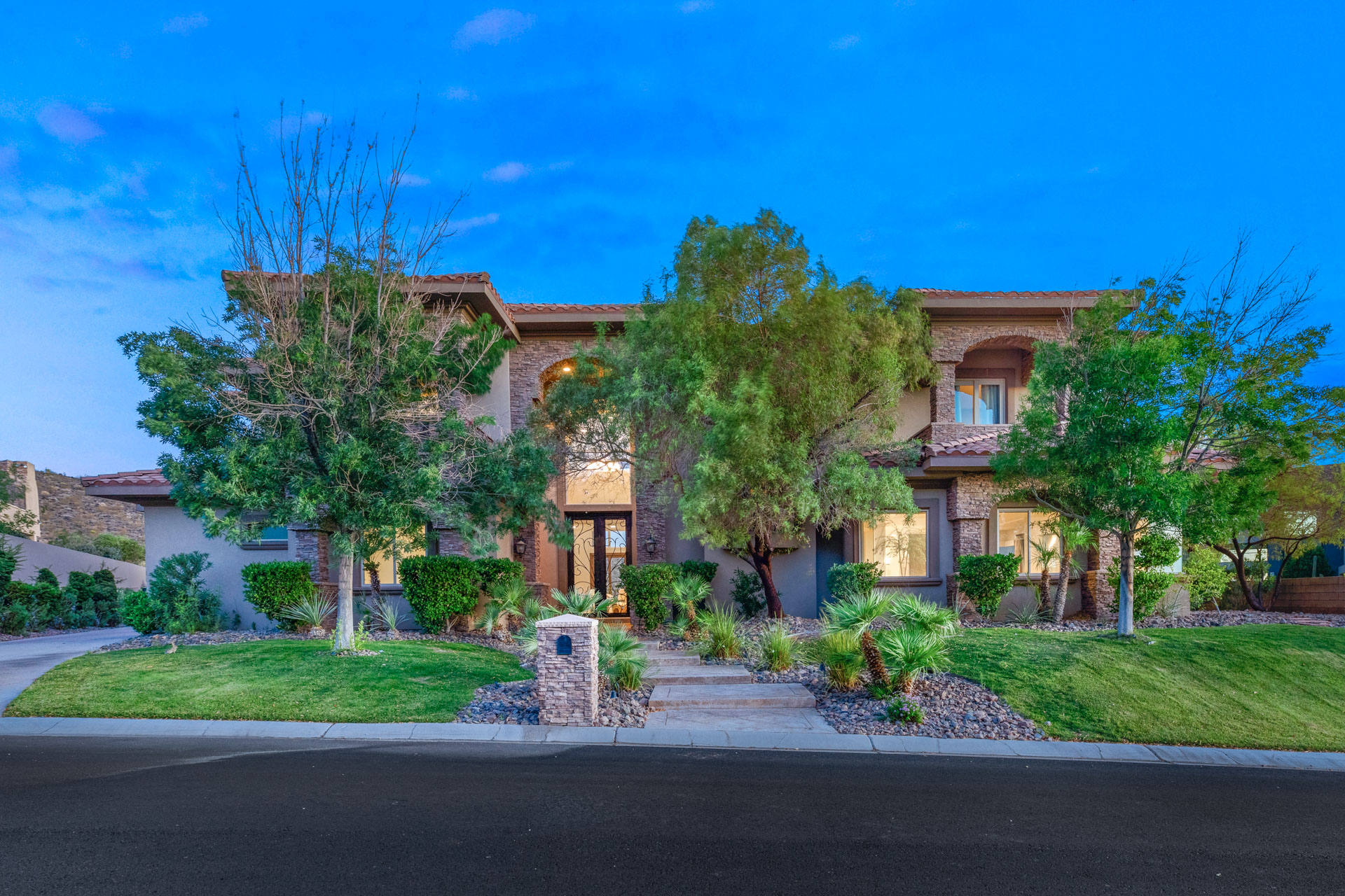 Welcome to your secluded oasis escape. Backing to Sloan Canyon National Conservation Park, this property truly affords the best in resort-style living. A transitional five-bedroom, six-bath, 6,434 sq. ft. estate sits on a nearly half-acre beautifully landscaped lot.