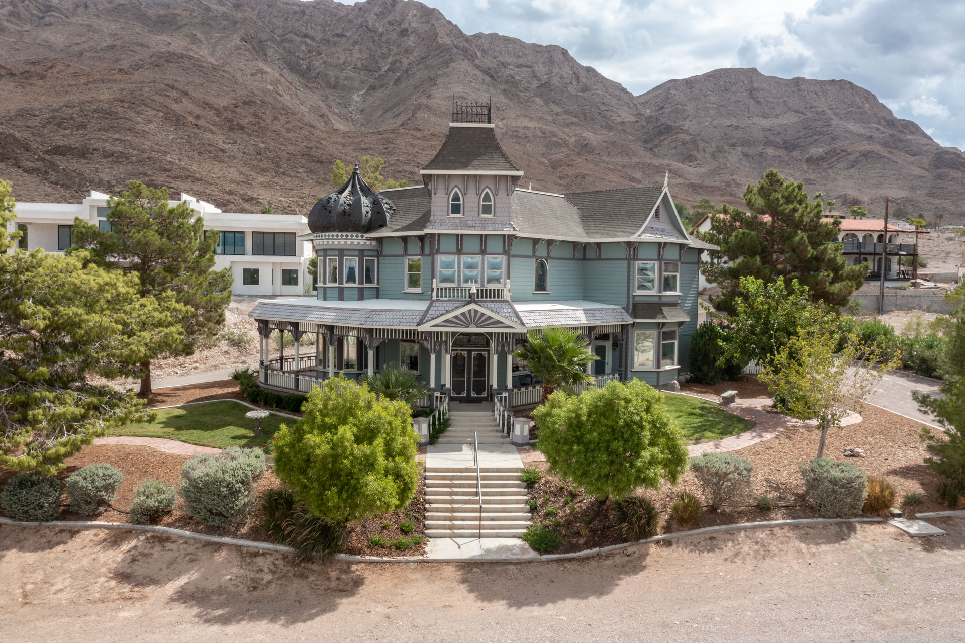 Own a piece of southern charm. This Queen Anne’s style Victorian home is set on a half-acre beautifully landscaped lot with palms, pines, and flowering bushes. With backdrop of Frenchman Mountain and Red Rock National Canyon views, enjoy cool evenings swinging on the wrap-around porch or lounging on the back stone-lined patio in lush green-grass landscaped backyard ringed by a white picket fence.