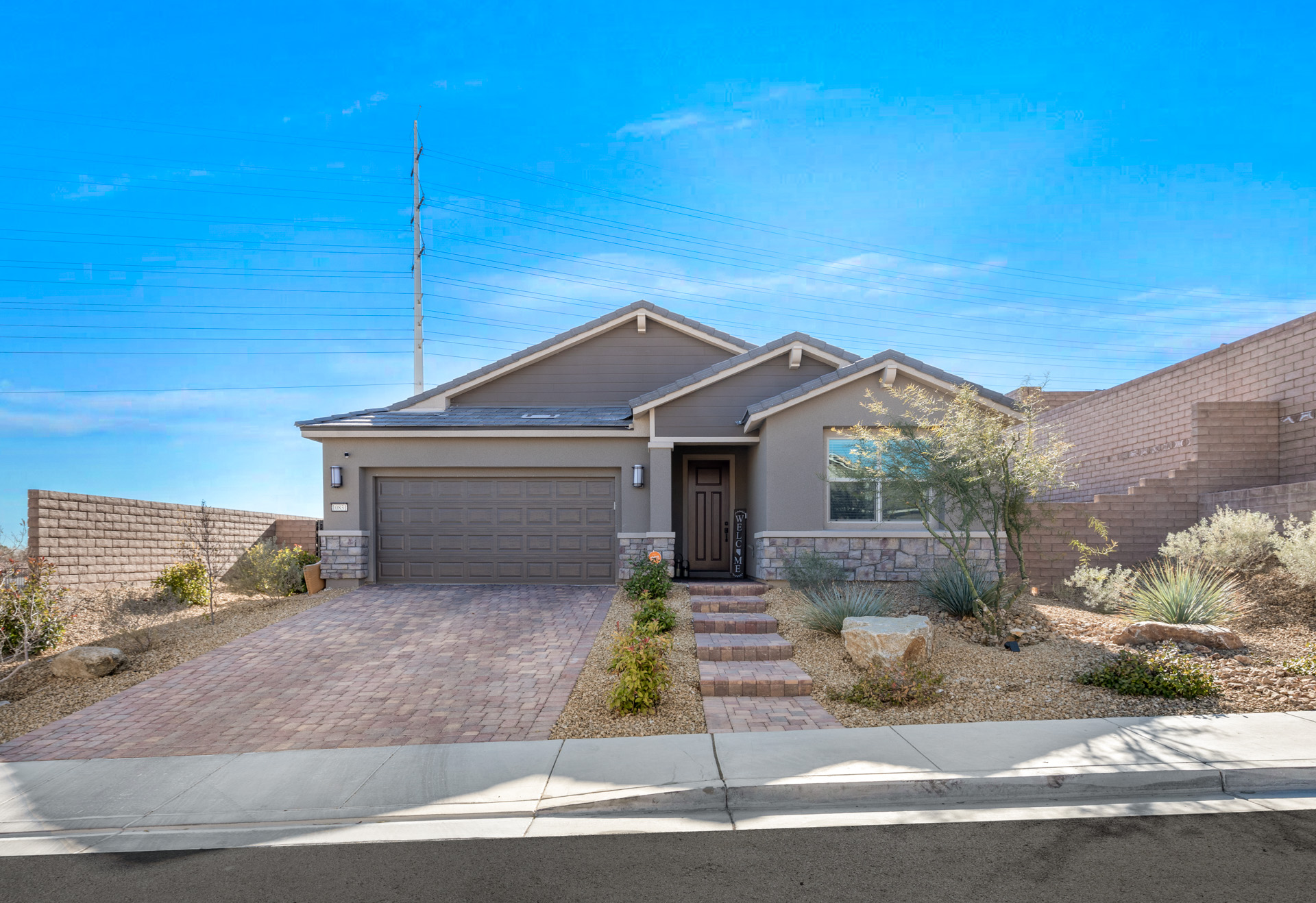 Welcome to this absolutely stunning single-story home located in the gated community of Reverence in Summerlin with both mountain and city views! This 3 bedroom, 2 bath property was built in 2018 by Pulte Homes and is highly upgraded. Step inside to find an open kitchen area filled with natural light that offers a large island perfect for family meals or gatherings of friends. Custom cabinets, floors, auto blinds, pendants, and kitchen light fixtures.