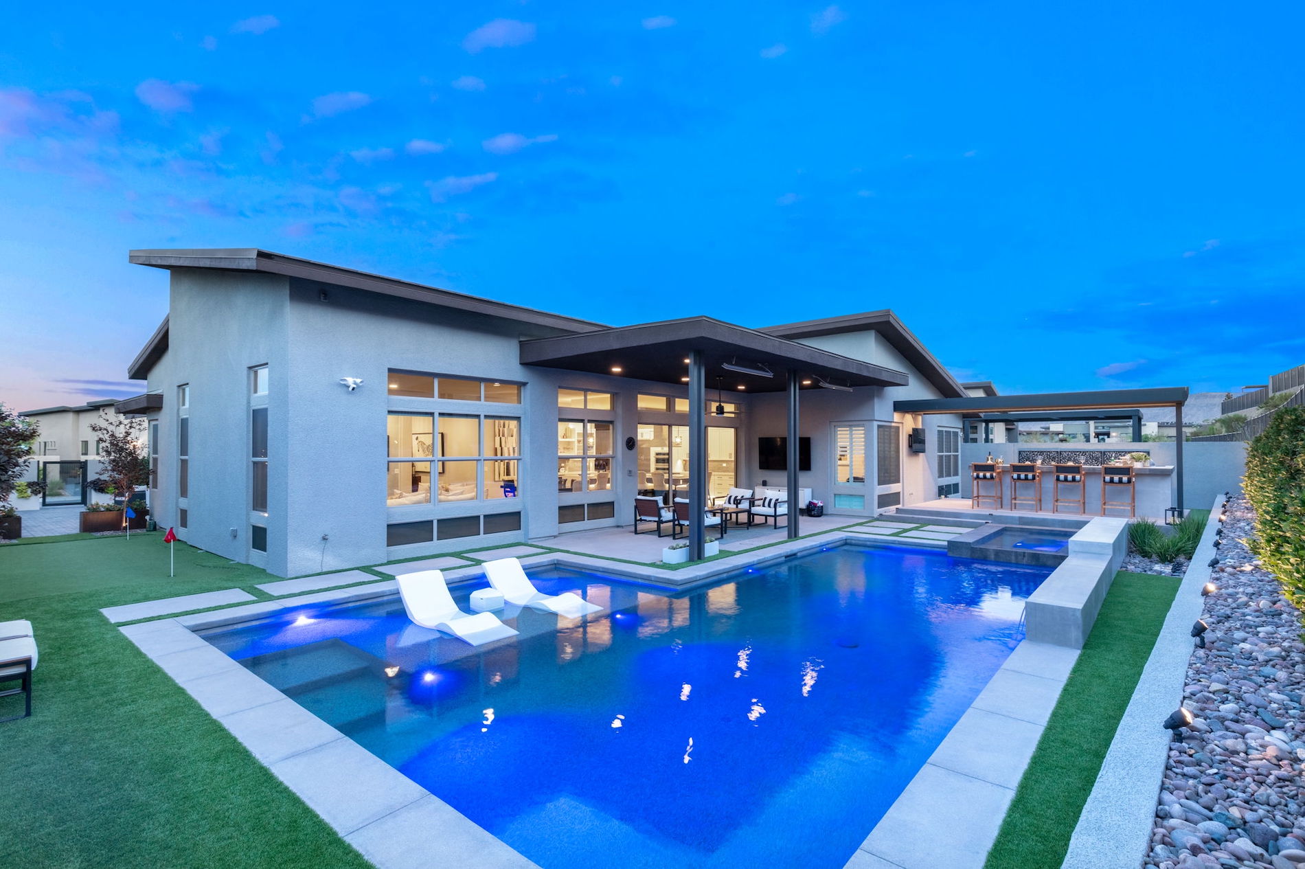 Fabulous single story home with impeccable style. Contemporary design with amazing inside/outside flow. Open floorplan with great room, kitchen and dining rooms all with views of the backyard.