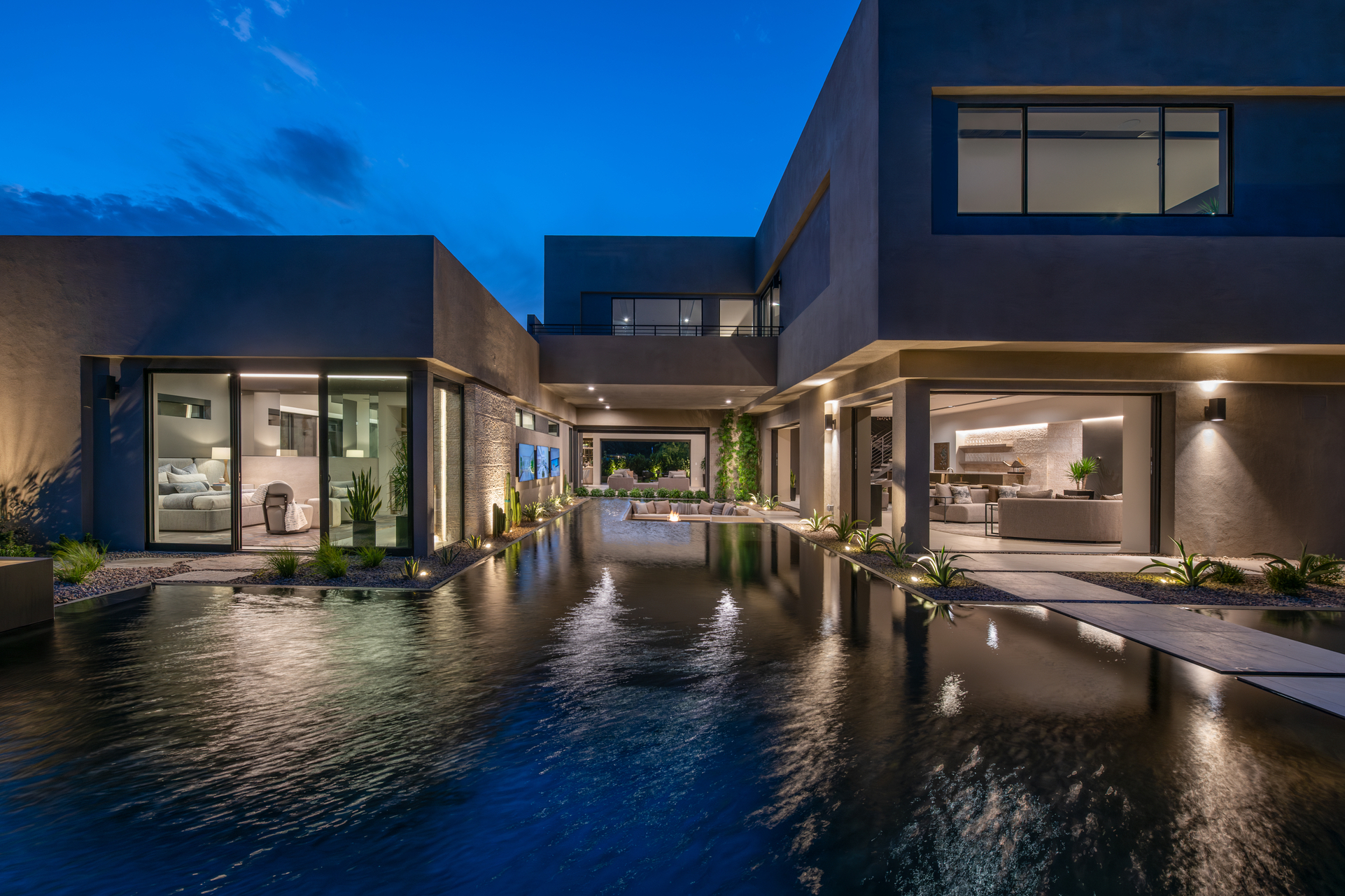 Welcome to 7070 Nomi Court, a masterful testament to modern architectural brilliance nestled within the prestigious Tomiyasu Community. Crafted by the renowned Blue Heron, this two-story custom home is an exquisite fusion of art and engineering, residing on over 1/2 acre of prime land, offering an unparalleled oasis of luxury and style.