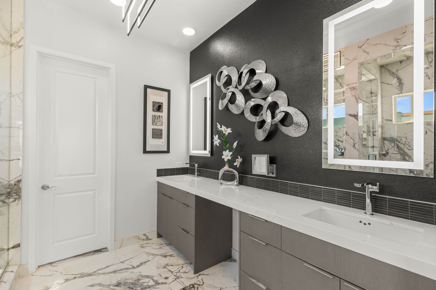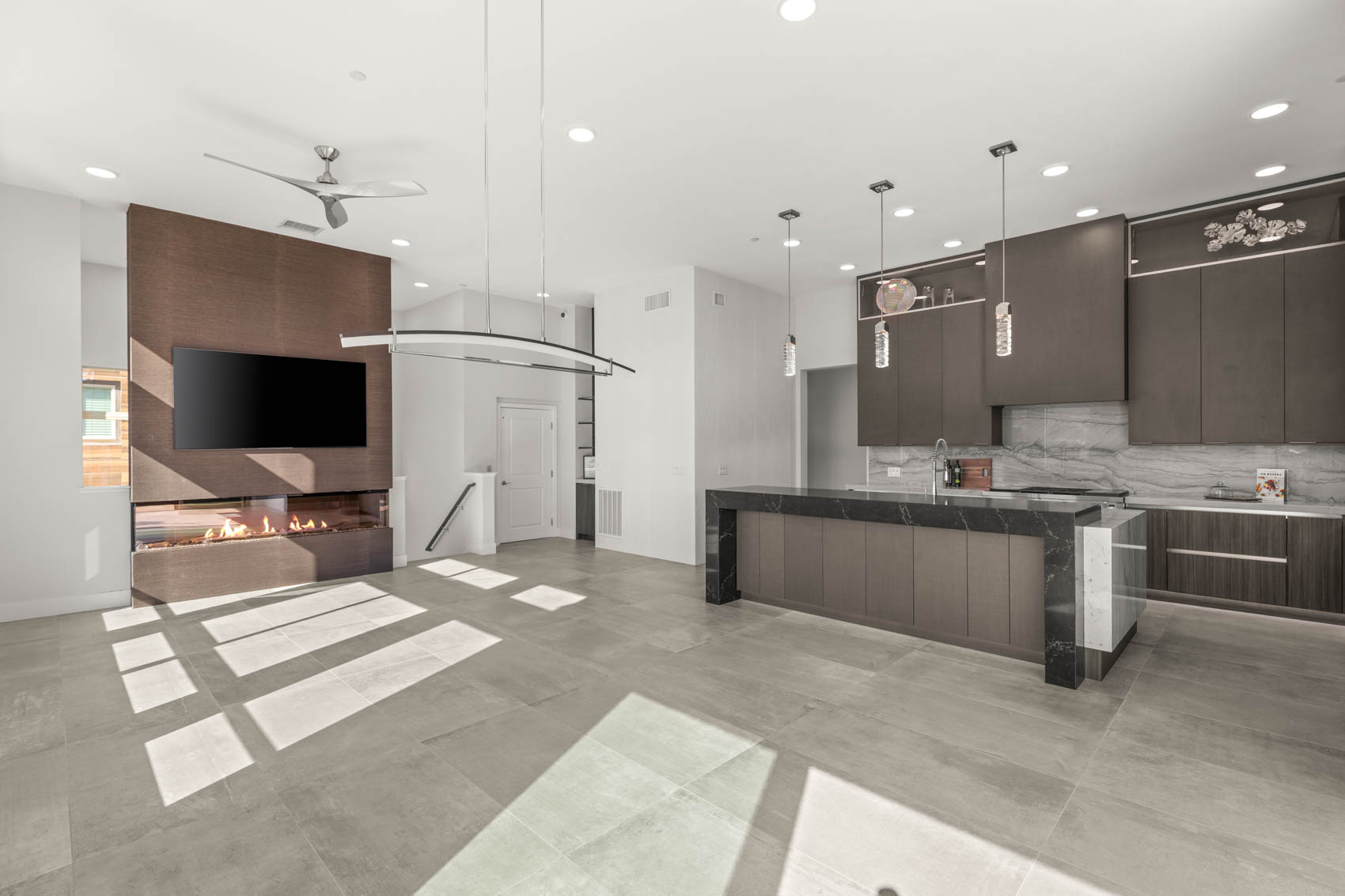 At 4312 Veraz Street in Trilogy, Summerlinās premier 55+ community, modern design meets breathtaking natural beauty. This top-floor-end unit Apex plan condominium with a private elevator offers 2,436 sq. ft. of refined living with 2 bedrooms, 2 ½ baths, and an Office. The heart of this home is a chefās dream kitchen, featuring a dual height expansive Island, high-end appliances including a multi-function gas range, built-in refrigerator and freezer, dual-zone wine refrigerator, custom cabinetry with pullouts and full slab backsplashes.